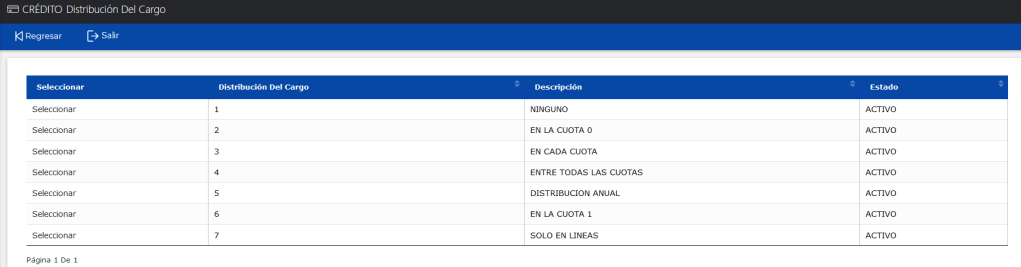 Hemos renombrado y modificado el orden de los datos que muestra el campo distribuir en la opción Distribución del Cargo.
