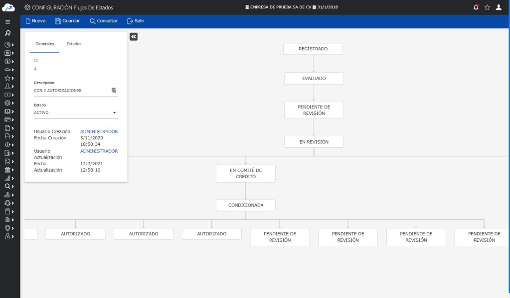 Estados intermedios: EN REV. DE COMITÉ DE CRÉDITO, EN REV. DE MESA DE CONTROL.