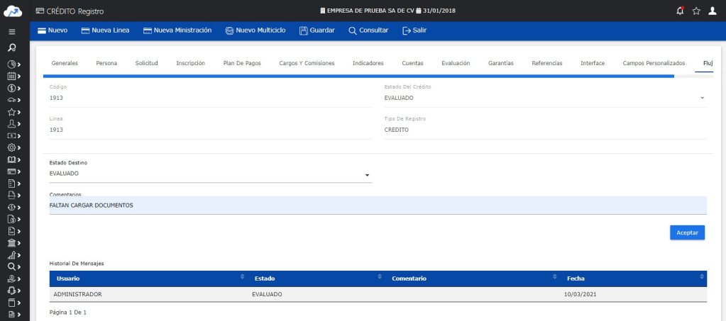 Ahora puedes definir una lista de estados personalizados en el Catálogo de Estados de Crédito, adaptándolos a las necesidades operativas de tu institución. Además, estos estados pueden estar condicionados según el tipo de usuario, permitiendo: