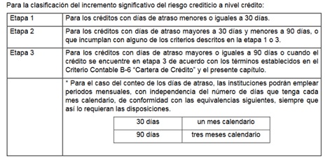 Existen 3 tipos principales de Cartera Crediticia, en las cuales cada una tendrá sus etapas de riesgo crediticio, como se ilustra a continuación.