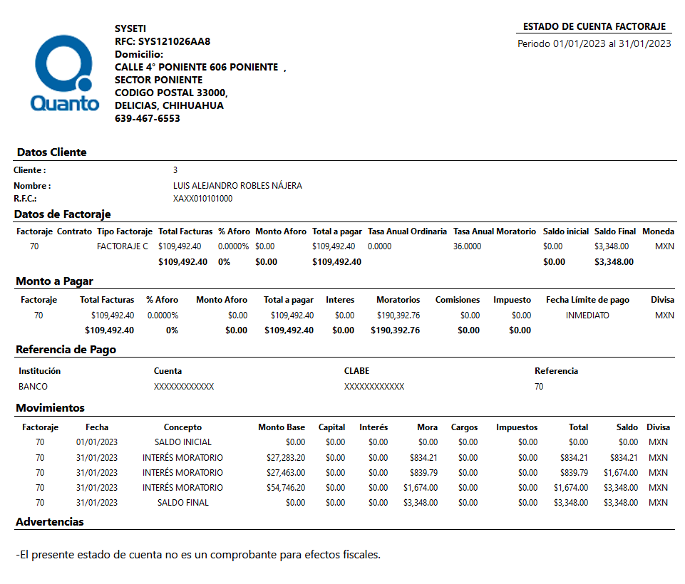 A partir de de esta actualización, el módulo de factoraje de nuestra plataforma tiene una mejora que te encantará. Nos complace anunciar que hemos implementado la generación de estados de cuenta para que nuestros usuarios ahorren tiempo y esfuerzo en la creación manual de documentos.