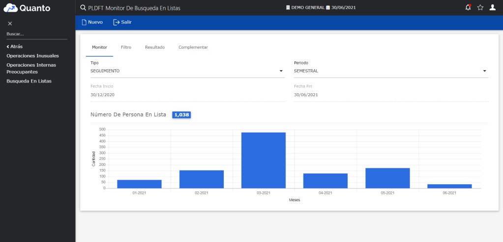 La búsqueda se realizara y el resultado será complementado en el monitor de búsqueda en listas si así se desea.