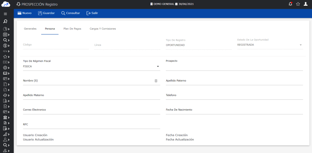 Ya es posible dar de alta un prospecto directamente en la opción de Registro de Oportunidad o vincular a uno existe en la sección «Persona».